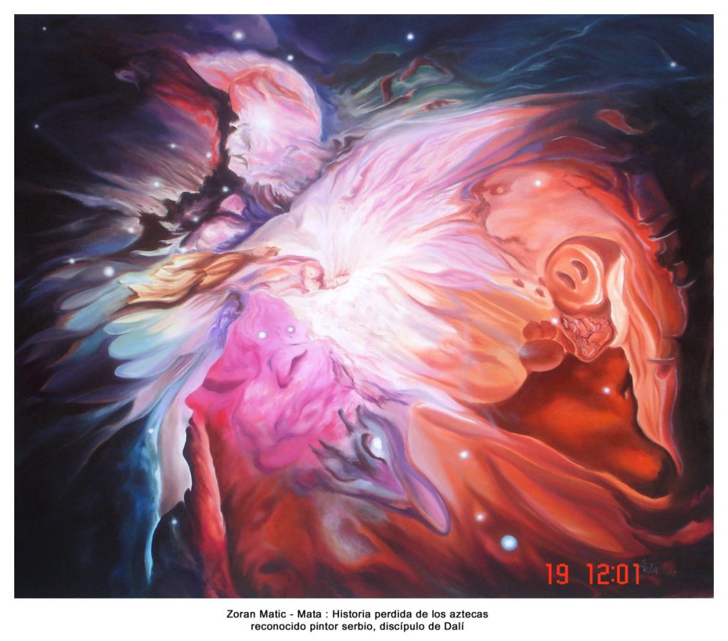 Zoran Matic: Se podría decir que, sin alguna explicación profunda, yo nací muy conectado con el mismo cosmos. O tal vez los Dioses del Olimpo tuvieron mucha charla sobre mi ser y al fin decidieron pintarme con muchos colores. ¿Y por qué es así?, porque desde chamaco, mientras me llevaban al preescolar, tenía un rinconcito bien escondido donde dibujaba y pintaba cada día, antes de ser consciente de mi propio ser. Más tarde, mis padres me han dicho que la directora (amiga de mis parientes) les daba las órdenes a los demás encargados de nosotros niños de que me dejaran en paz, para que yo me mantuviera conectado y sin disturbios en mi viaje cósmico. Y es así como empecé mi aventura con las artes, de la que resultó mi primera exposición a la edad de 9 años… y esa aventura todavía sigue en pie hasta estos días.
