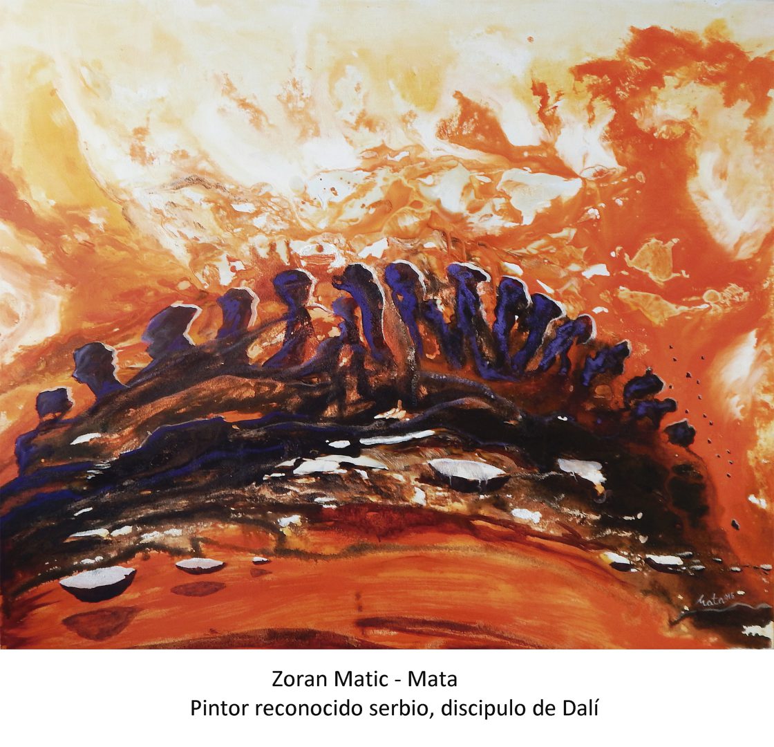La Obra de Zoran Matic Mata remite al enigma y al laberinto, pues parece enviar mensajes que se ocultan a la vista superficial y pueden parecer “esotéricos”, pero que se revelan ante la mirada que descubre los guiños de un artista que nos invita a penetrar en los múltiples mundos y dimensiones de su obra. Una Obra que reta al espectador a ver “más allá” de las apariencias y con “los ojos del alma”, sin que la razón estorbe y permitiendo que las formas y colores que tenemos enfrente despierten las múltiples posibilidades de interpretación de cada una de las personas que la observan.