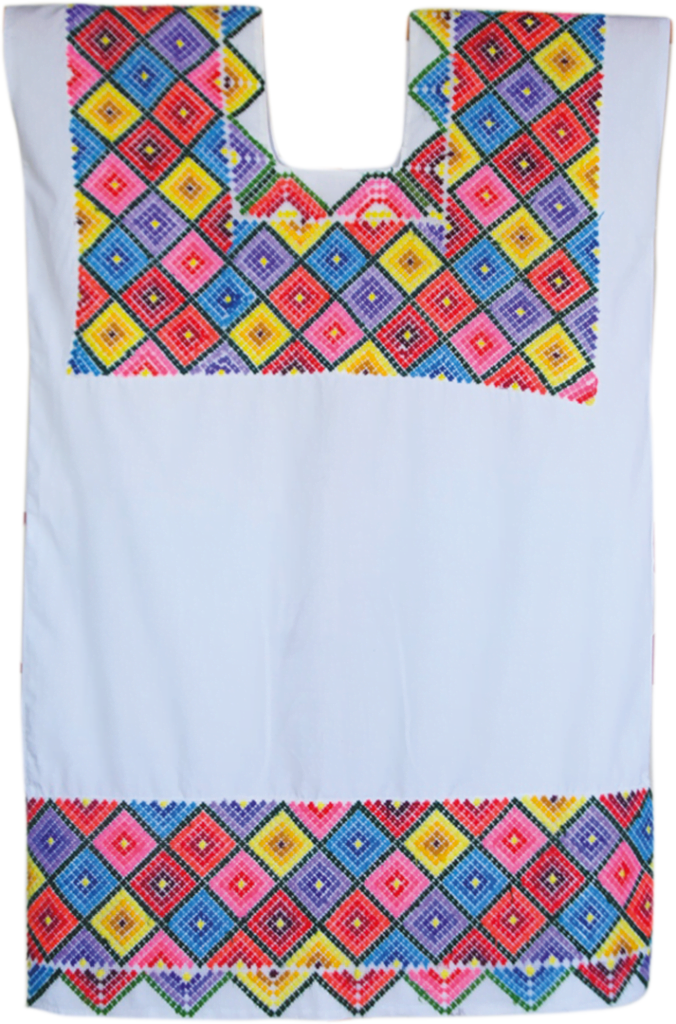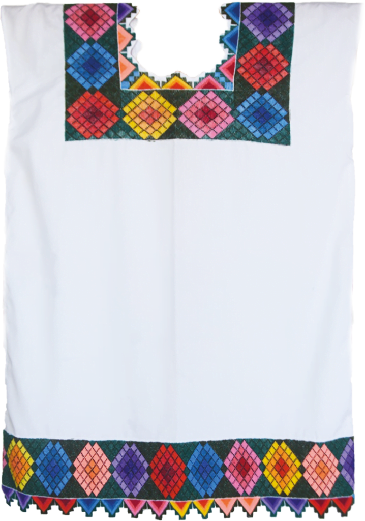 A la llegada de la máquina de coser, a mediados de los años 50´s, se empezaron a sustituir -en gran medida- los bordados realizados a mano, predominantemente los de la técnica conocida como xokbi chuy, y los diseños geométricos se vieron desplazados paulatinamente conforme avanzaba el uso de la máquina de coser y la integración de símbolos foráneos que, junto con el desarrollo turístico masivo, representaron nuevos cambios en la vida de las comunidades.