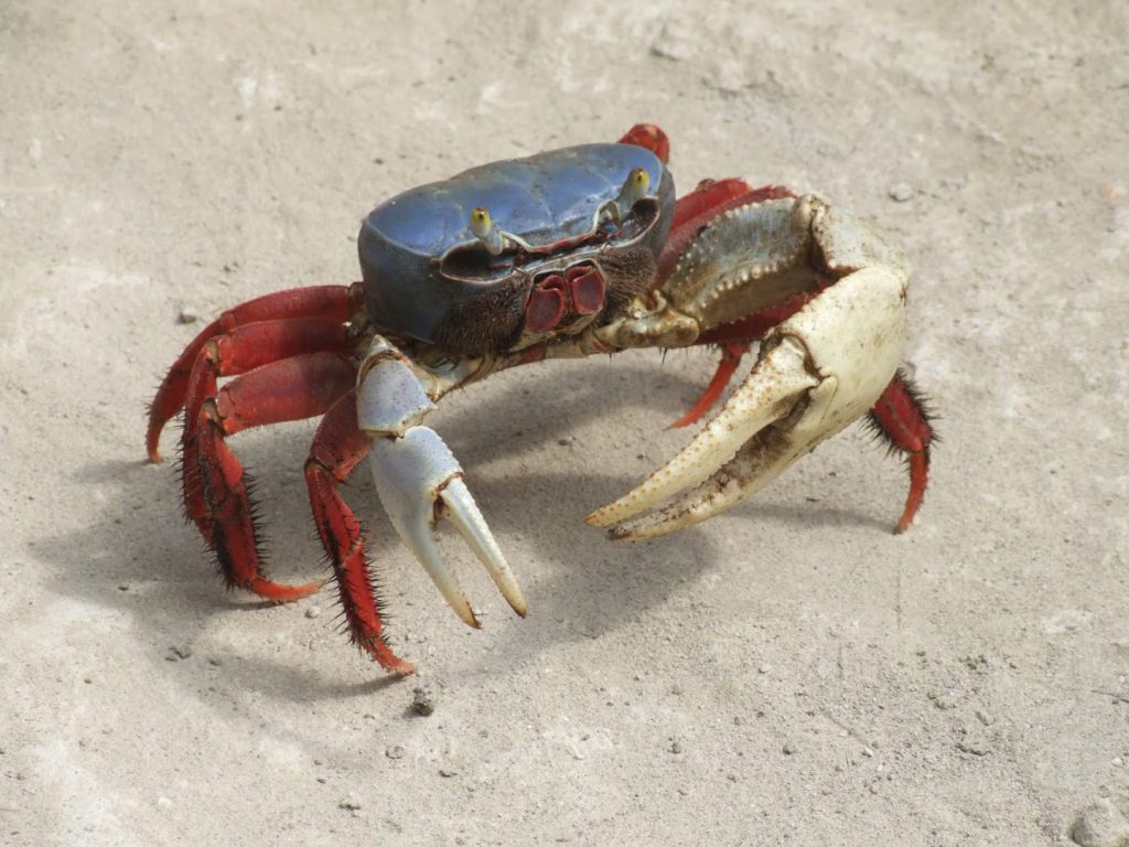 El cangrejo azul terrestre o cangrejo azul gigante (Cardisoma guanhumi) tiene cinco pares de patas y es uno de los cangrejos más grandes del mundo, puede llegar a medir 15 cm de ancho y pesar hasta 500 gr. Se distribuye desde Brasil hasta Florida. Los machos tienen una tenaza más grande que la otra, dicha tenaza puede llegar a ser más grande que su propio cuerpo; las hembras son en general de color pálido, por este motivo en inglés se le conoce como white land crab o blue land crab.