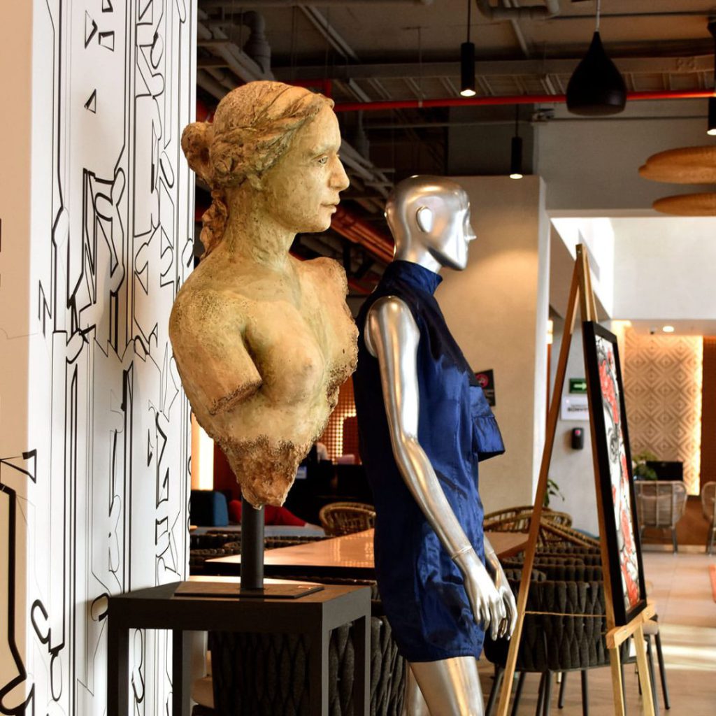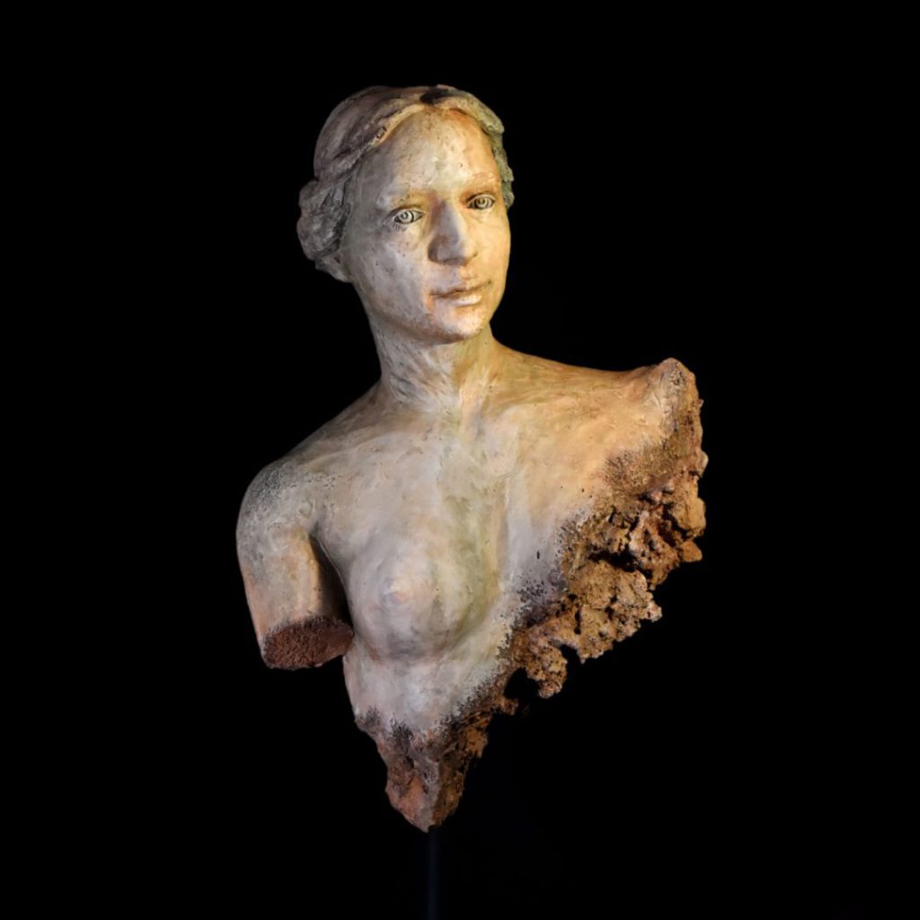 En “Venus resiliente”, por ejemplo, explora, inspirándose en la Venus de Milo, la figura de una mujer común, quien ha sufrido episodios dramáticos en su vida, y aún así mantiene su belleza y sus deseos de soñar, y se transforma en una alegoría de muchas mujeres.