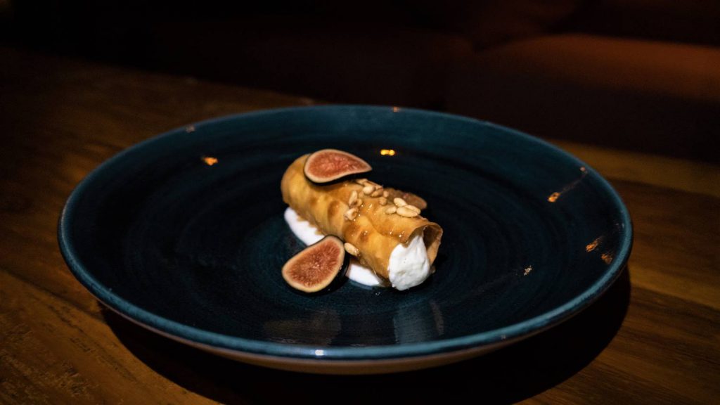 No sólo el sabor exquisito es lo que cautiva, si no también la experiencia misma que llega a todos tus sentidos; desde la armonía que crearon un cuarteto de músicos internacionales, hasta lo blando del arroz al horno con tagliata, tuétano y trufa. Pero que es de una cena sin su postre; por ello finalizamos con unos cannolis rellenos de ricota, higos, miel y piñones tan deleitables como el Recioto della Valpolicella.
