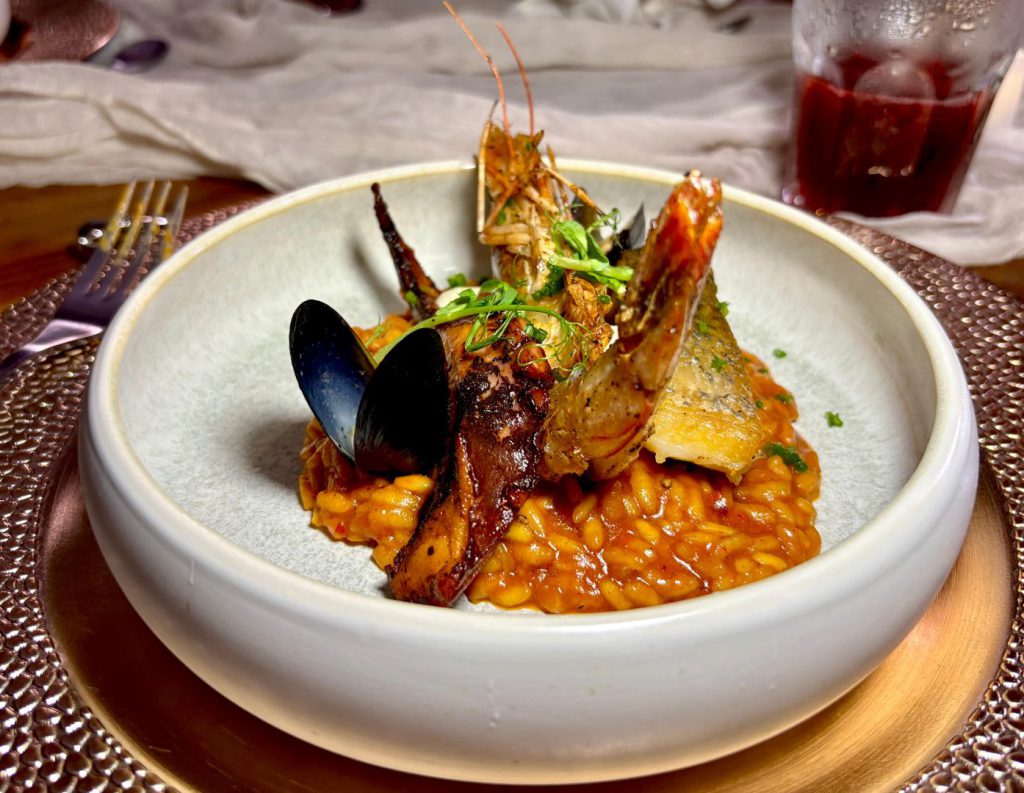 Durante la degustación, los asistentes disfrutaron de una ensalada de betabel rostizado con jocoque y vinagreta de fresa caramelizada, seguida de una tetela de langosta con longaniza de Valladolid. Como platos principales, el chef presentó un risotto a la tumbada con mariscos y alioli de ajonjolí, además de un filete de res con mole de dátil y puré de plátano macho. El cierre dulce estuvo a cargo de un cheesecake de maracuyá con gel de mango, una interpretación tropical que equilibró frescura y textura.