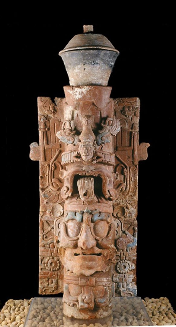 Los mayas emplearon diversos objetos para venerar a sus dioses y antepasados durante las ceremonias religiosas. En Palenque, Chiapas, se elaboraron sofisticados objetos de culto que conocemos como incensarios efigie y se trata de la colección más numerosa que se conoce en la actualidad, la cual suma un total de 130 objetos de barro, así como 16 elaborados en piedra caliza.
