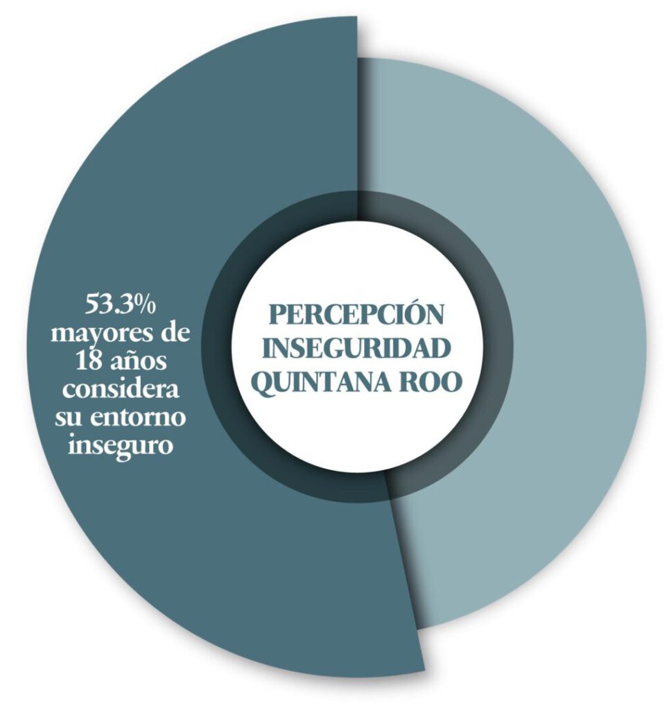 Seguridad: 53.3% de la población (de 18 años y más) en el estado de Quintana Roo considera que vivir en su entorno más cercano, colonia o localidad, es inseguro. A nivel nacional esta cifra es del 82.1 por ciento. ¿Cómo invitar al turista a venir a disfrutar las bellezas naturales de Quintana Roo si la inseguridad no se logra contener? ¿Podremos reflexionar en ello?