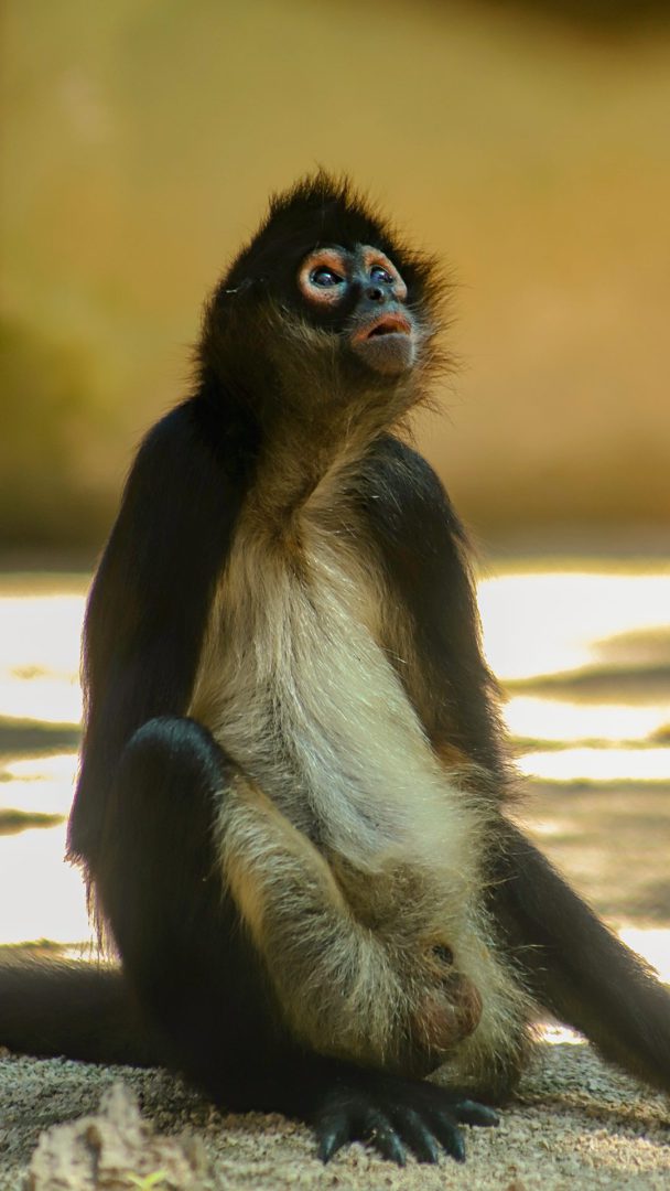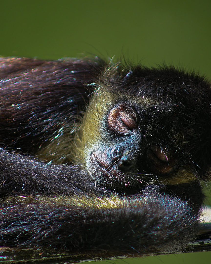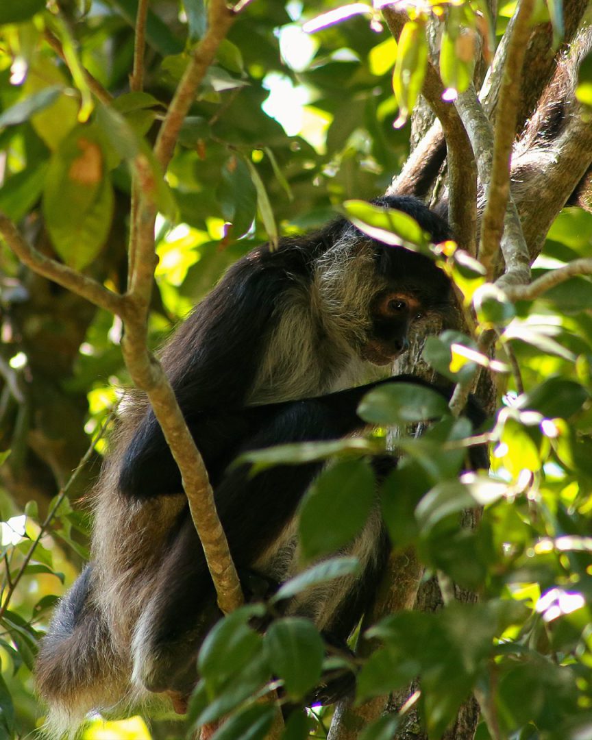 Adicional a sus largos brazos y piernas, la cola del mono araña es prensil, es decir, con ella puede sujetarse, balancearse y escalar las copas de los árboles tropicales, convirtiéndose en una quinta extremidad que le permite desplazarse con facilidad hasta volverse “el acróbata de la selva maya”.