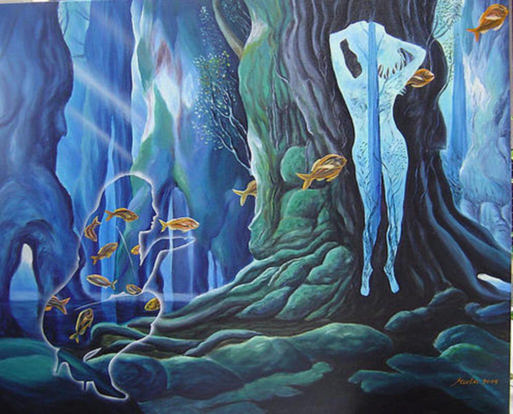 3.- Su obra representa personajes que evocan a espíritus de la naturaleza o el mundo de los sueños y los mitos… ¿se considera dentro de alguna corriente artística en particular (simbolismo, surrealismo, realismo mágico)?