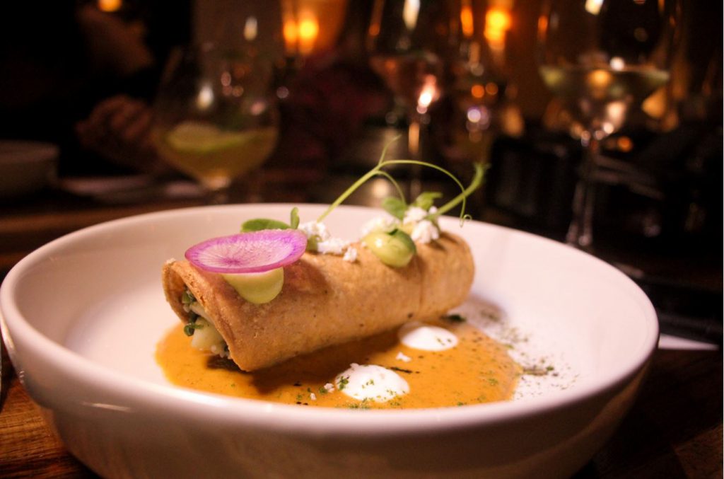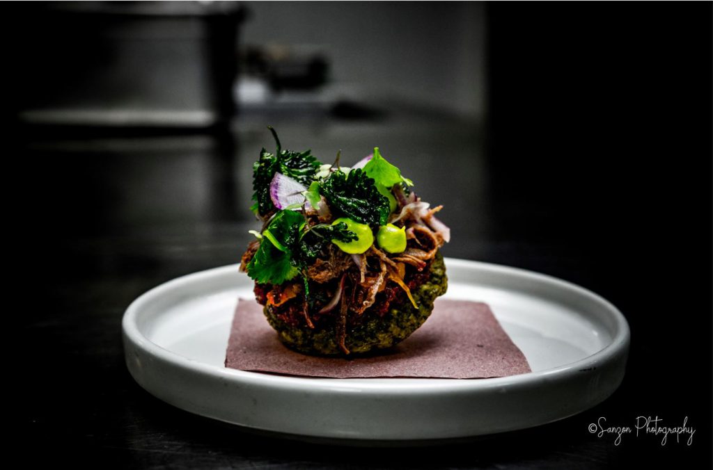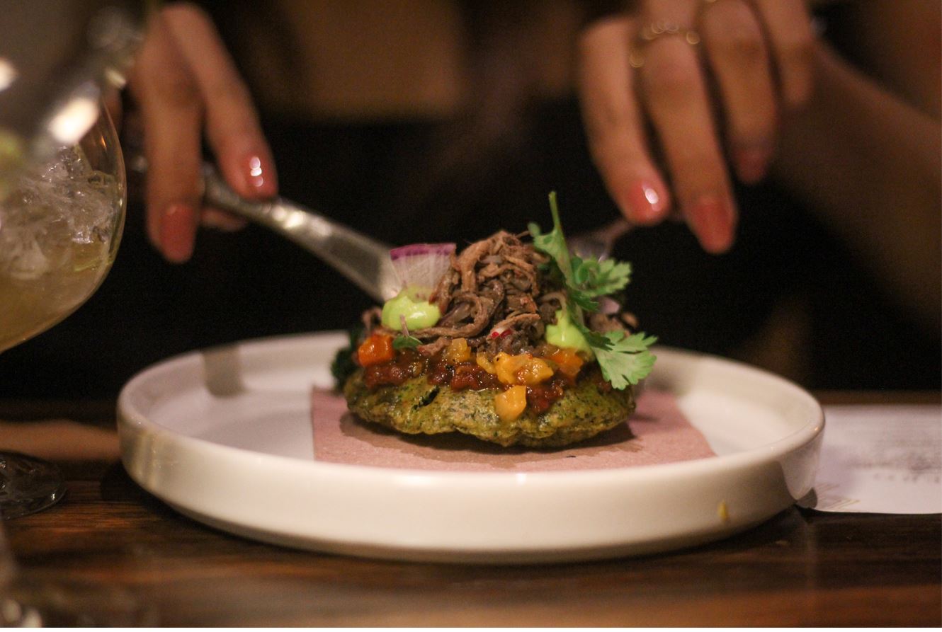 Iniciando el evento con dos entradas exquisitas; Tzic de Venado y Ensaladilla de lentejas. Si nunca habías imaginado que la gastronomía tradicional mexicana podía provocar la experiencia de ser de la realeza, es porque no has tenido la oportunidad de degustar el universo de sabores que nos regalan estas dos prodigiosas mentes. La manera en que las láminas de aguacate se untan en la lengua, lo crujiente de la flauta rellena de un puré suave de frijol con papa, o algo tan sencillo y hechizante como unos taquitos de papada de lechón con tortillas de maíz azul hechas a mano. Claro que una presentación de tan alta categoría, merece ser acompañada del mejor maridaje.