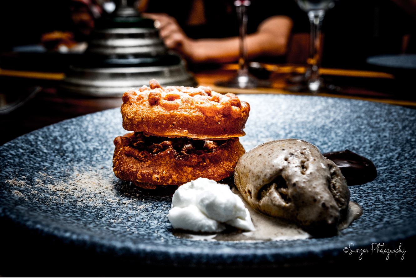 La Somelier Roxana Rivera nos presentó Casa Madero, la vinícola más antigua de América, que ha dejado un legado desde hace más de 424 años, guiando con maestría por los diversos varietales que se encuentran en cada botella; desde el Shiraz, Chardonney, Chenin blanc hasta el Suavignon y Cabernet franc. Culminando la cena con unos buñuelos de viento, pinole, azúcar y helado de maíz azul acompañados de un Casa Madero cosecha Tardía.