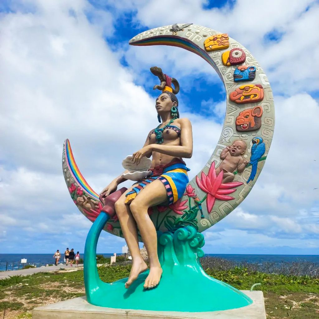 Los antiguos mayas habitaron esta isla de siete kilómetros de largo. Desde aquí, observaban el cielo para hacer sus estudios astrofísicos y matemáticos, vinculados a la religión, y se veneraba a Ixchel: diosa de la fertilidad, el amor, la belleza, la maternidad, la concepción y el parto. En Punta Sur, sobreviven vestigios de una obra precolombina dedicada a esta deidad.