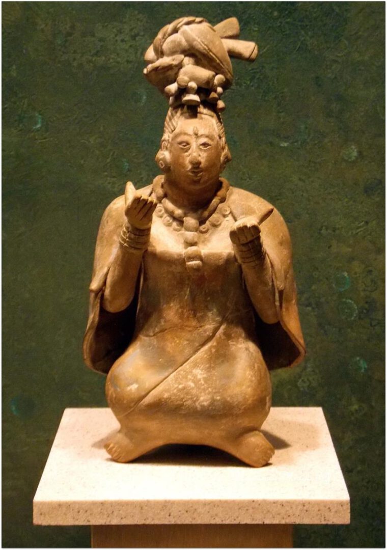 Algunas de las figurillas modeladas a mano presentan restos de pigmento azul, blanco, amarillo y rojo de cinabrio. Son representaciones realistas en posturas dinámicas, masculinas o femeninas generalmente relacionadas con la vida cotidiana. En las representaciones femeninas pueden observarse mujeres realizando actividades cotidianas como moler maíz, y usando telares de cintura. También se han encontrado mujeres ancianas y mujeres con rica indumentaria.
