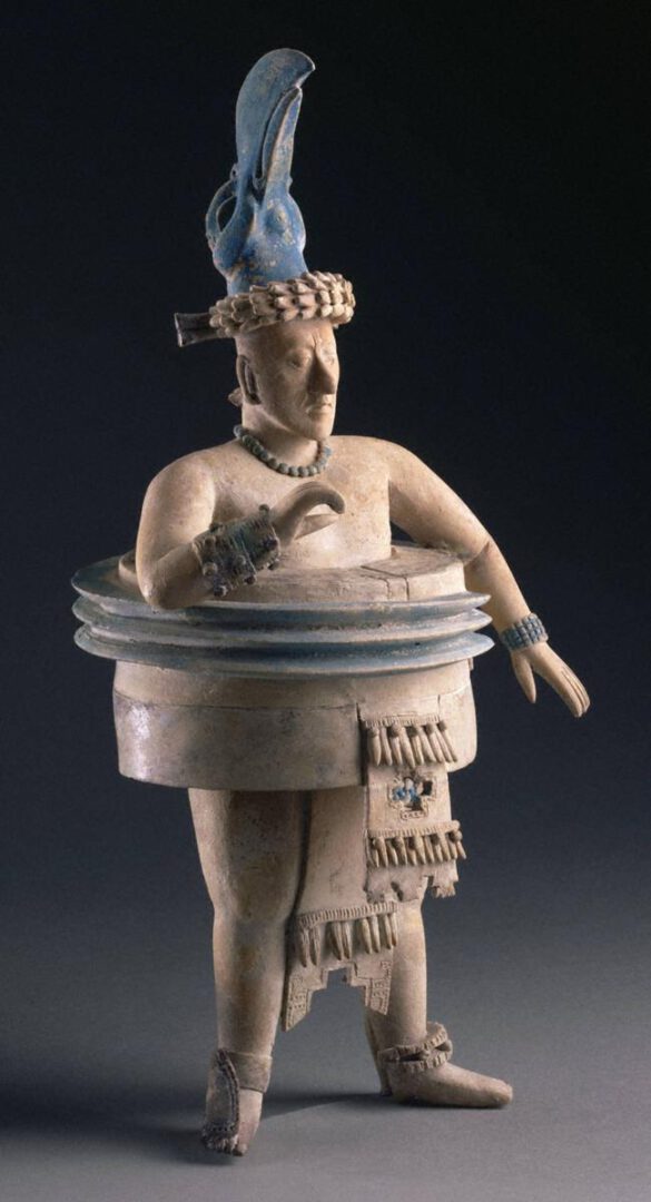 Entre las figurillas masculinas aparecen personajes muy ataviados: Sacerdotes con vistosa indumentaria, jugadores de pelota, personajes gordos, enanos, jorobados, tuertos, hombres defecando, sentados en tronos o bancos, saliendo de una flor, y muchas más representaciones que varían en posturas y temas. Varios de los elementos de la naturaleza fueron representados en las obras de arte realizadas por los mayas. Las figurillas han cumplido conciertas funciones y generalmente cuando se encuentran en contextos funerarios están asociadas a connotaciones rituales o religiosas.