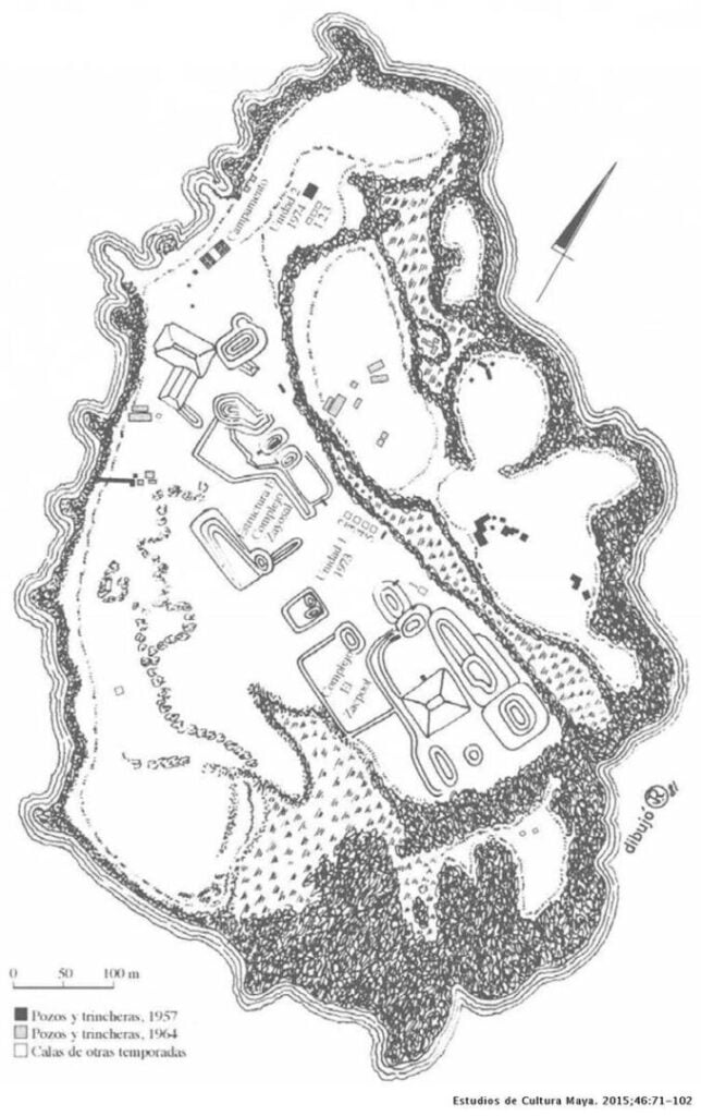 El sitio de Jaina se encuentra ubicado en una pequeña isla en la costa norte de Campeche. Tuvo su mayor esplendor durante el Clásico Medio y Tardío (600 – 900 d.C.). Las evidencias demuestran que posiblemente tuvo una combinación de centro ceremonial y habitacional bastante denso, especializado en la pesca. El sitio es famoso por sus impresionantes figurillas, muchas de las cuales se han encontrado en contextos funerarios. Por lo que algunos investigadores sugieren que la ciudad fue una necrópolis, aunque esto aún no se ha podido establecer claramente.