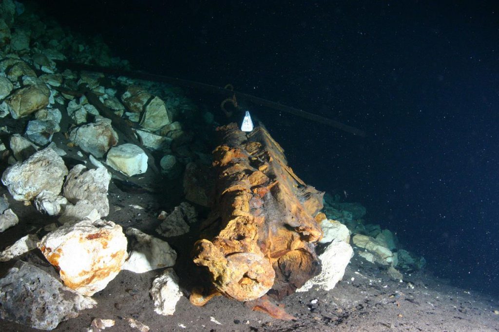 Foto de portada: Casco de cobre en el interior del cenote. Fotografía de Octavio del Río