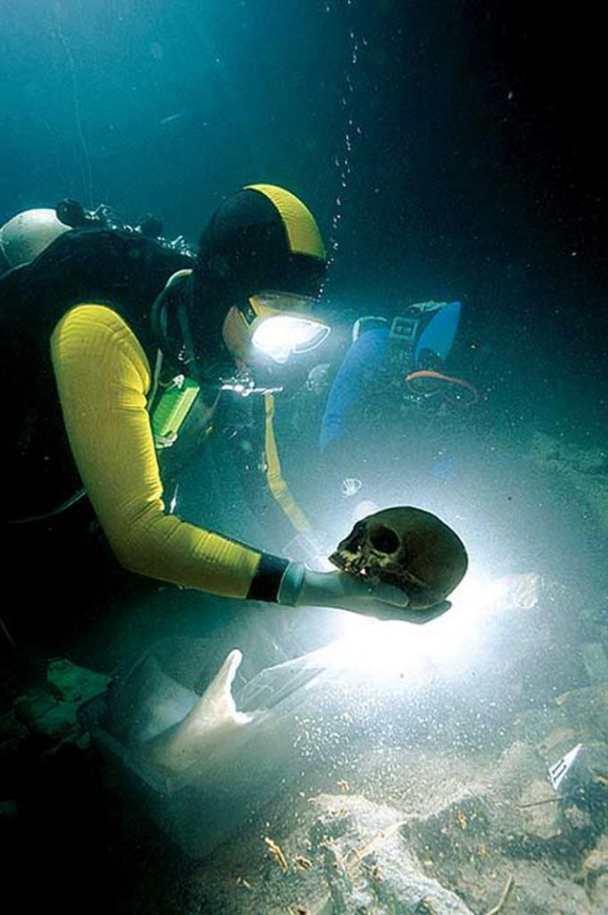 Dentro de estas cuevas, ahora inundadas, se ha encontrado evidencia arqueológica y paleontológica que data de finales del Pleistoceno e inicio del Holoceno, momento en el que da término el último periodo glacial también conocido como como glaciación Würm o Edad de hielo (hace unos 10,000 años atrás). En ese entonces, el nivel del mar estaba 30 m por debajo del actual, lo que permitía que las cuevas se mantuvieran secas y fueran el habitáculo ideal para los humanos de la prehistoria, quienes habitaron en esta peculiar área geográfica y geológica de la península de Yucatán por un periodo de alrededor de 5000 años: entre los 13,700 y 8,000 años atrás.