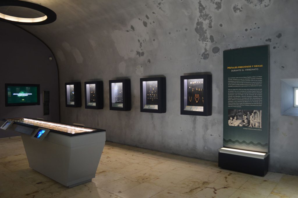Este espacio resguarda una de las colecciones virreinales más importantes encontradas tras la investigación subacuática. Incluye más de 200 objetos de oro, esmeraldas, diamantes, amatista e imitación de coral rojo, recuperados en el naufragio Ancla Macuca, del siglo XVIII: una embarcación que fue parte del sistema de navegación establecido entre la Nueva España (México y la península de Yucatán) y la Nueva Granada (Colombia, Venezuela, Ecuador, Panamá y Guyana). Durante las exploraciones, los investigadores recuperaron instrumentos de percusión y laminillas de oro cortadas, que indican que pertenecían a un orfebre que trabajaba durante el viaje en la fabricación de piezas de joyería destinadas al uso cotidiano de las elites, ya que entre los hallazgos se encuentran anillos, dijes, botones, mancuernillas, mondadientes y cadenas, así como aplicaciones para mantos, medallas, rosarios, relicarios y cruces empleados en ceremonias religiosas.