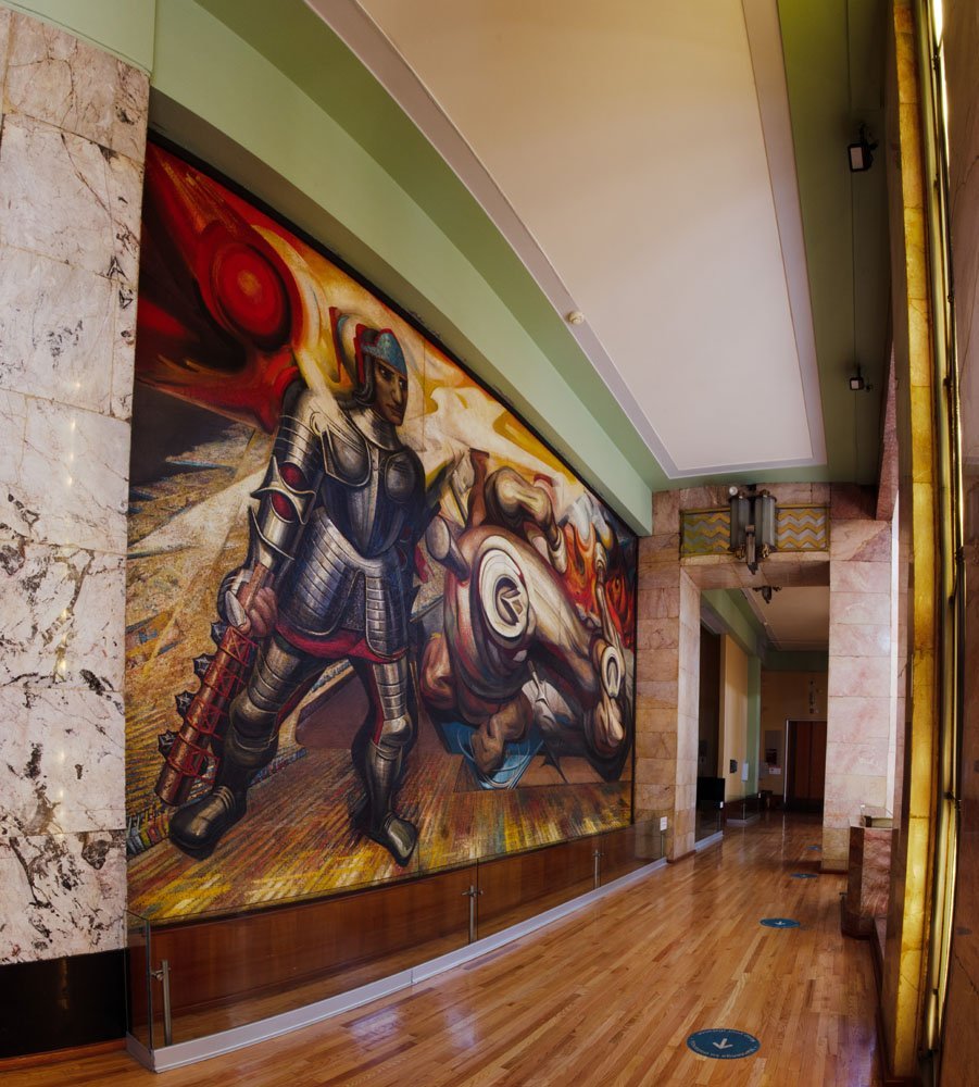 Está integrada por 17 tableros ejecutados entre 1928 y 1963 por artistas representativos del movimiento muralista: José Clemente Orozco, Diego Rivera, David Alfaro Siqueiros, Rufino Tamayo, Jorge González Camarena, Roberto Montenegro y Manuel Rodríguez Lozano.