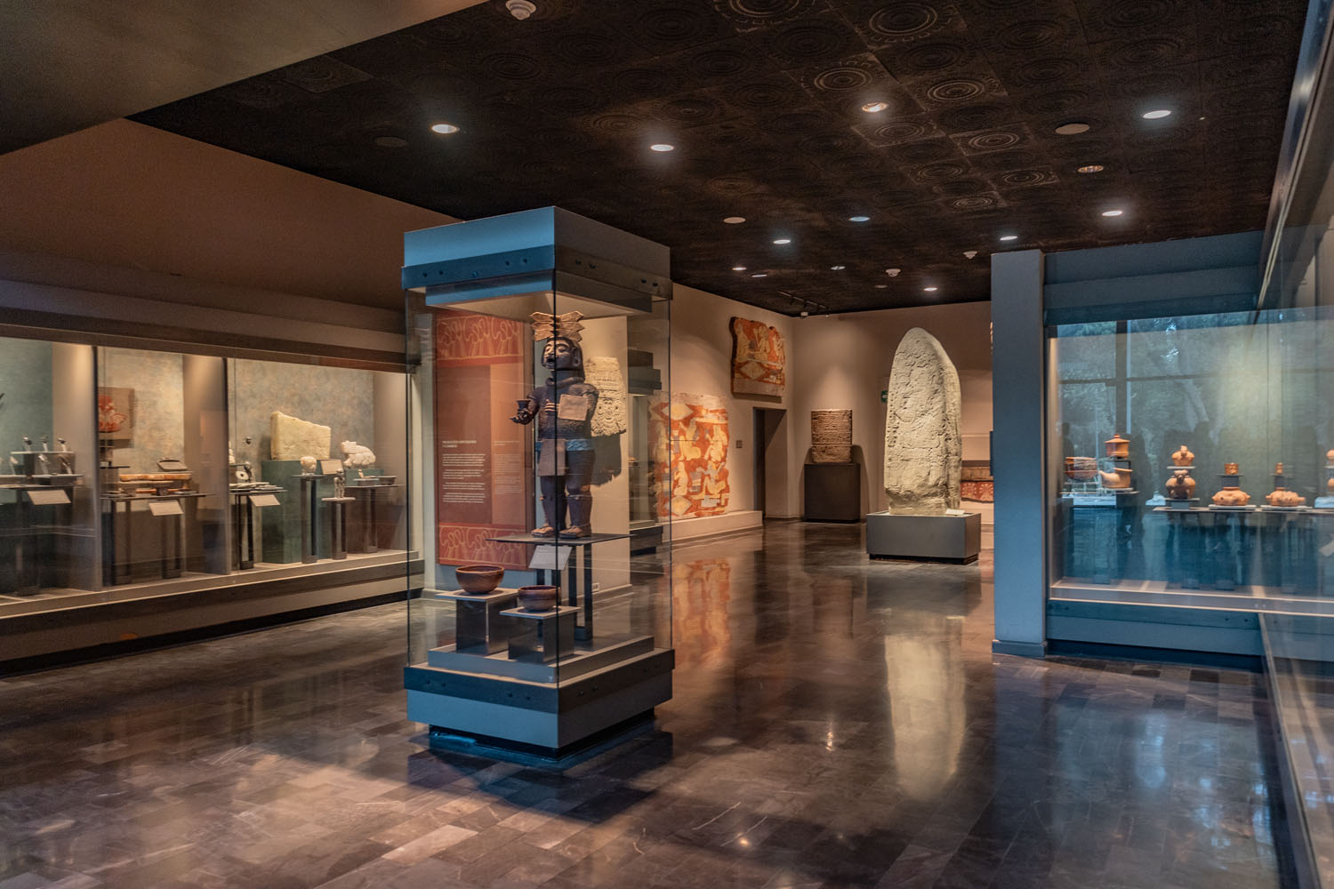 El nuevo edificio del Museo Nacional de Antropología abrió sus puertas al público el 17 de septiembre de 1964. Cuenta con 22 salas permanentes, una sala de exposiciones internacionales y otra para exposiciones temporales nacionales. En la planta baja, están ubicadas las salas arqueológicas: Poblamiento de América, Preclásico Altiplano Central, Teotihuacán, Los Toltecas y el Epiclásico, Los Mexicas, Culturas de Oaxaca, Culturas de la Costa del Golfo, Los Mayas, Culturas del Occidente y Culturas del Norte. En sus 11 salas, se exhiben siete mil 780 objetos de materiales pétreos, cerámica, madera, pluma, textil, hueso y metales; otros 68 mil objetos se guardan en sus acervos destinados a exposiciones temporales y de investigaciones.