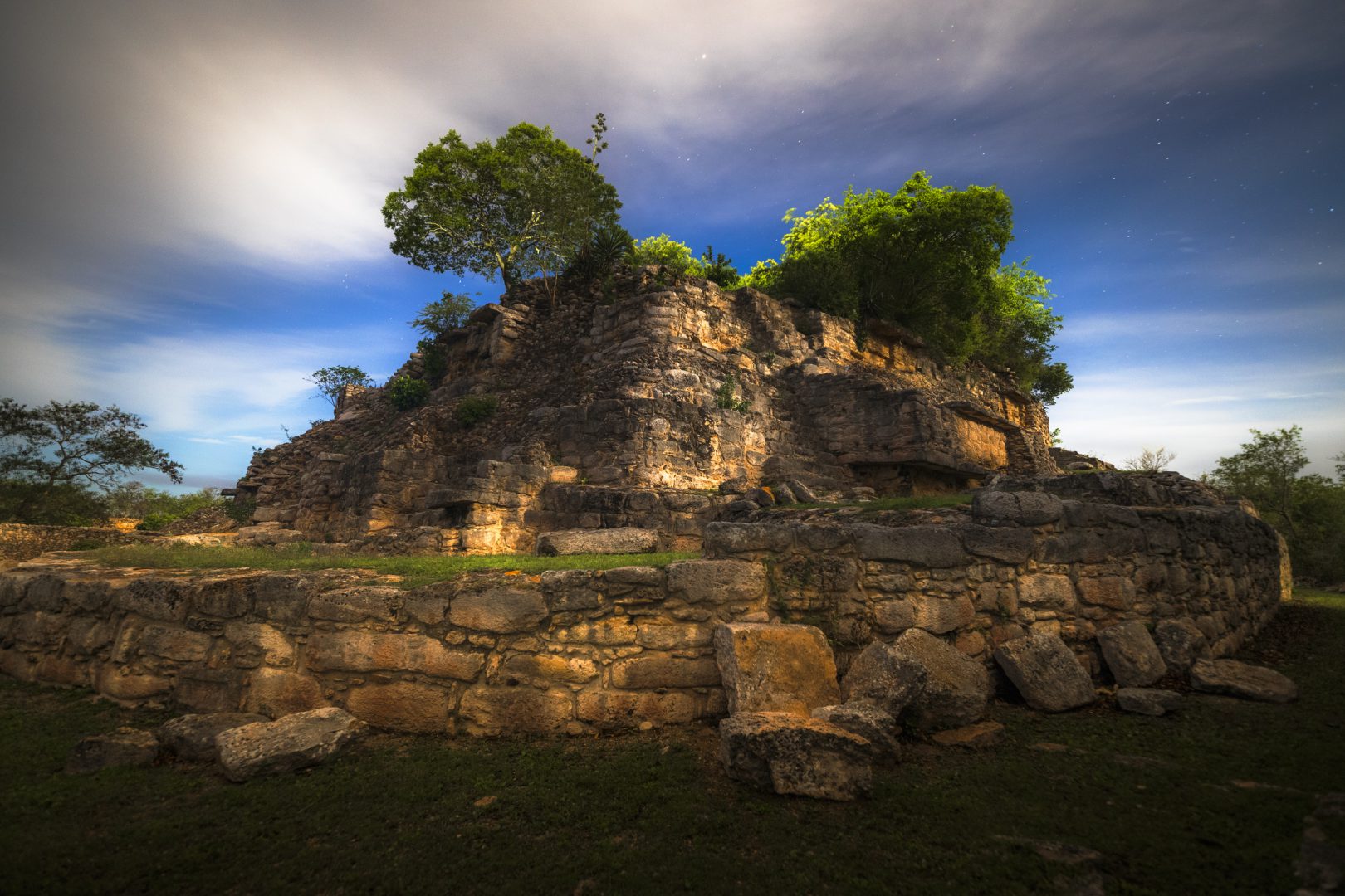 constante para los animales que habitan en esta zona.En la zona núcleo de la Reserva de la Biósfera de Calakmul, se puede encontrar la selva alta perennifolia, la más exuberante. Si se le observa desde las alturas, se apreciarán sus diferentes tonos de verde y sus grandes árboles, algunos de hasta 60 metros de altura, como el pukte’ (Bucida buceras) y el machiche (Lonchocarpus castilloi).