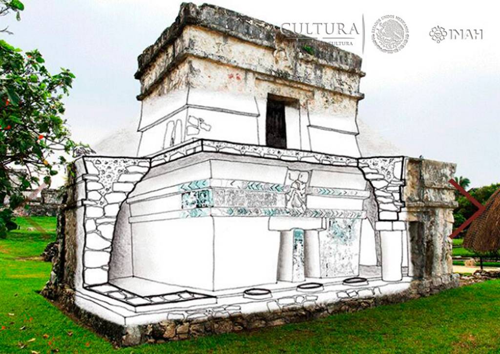A pesar de que Tulum fue uno de los primeros sitios avistados por los conquistadores españoles, las crónicas del siglo XVI sólo parecen hacer referencia a El Castillo y las estructuras que podían verse desde el mar; y aunque hay una breve mención al sitio hecha por Juan José Galvez a Juan Pío Pérez en 1840, la primera descripción del edificio al que aquí vamos a referirnos, fue realizada por John Stephens a mediados del s. XIX, quien describió la decoración exterior del edificio así como sus pinturas interiores, que no pudo apreciar plenamente puesto que “están verdes y enmohecidas por la exuberante vegetación que sofoca al edificio” (Stephens, 1843: 403); su compañero de aventuras, Frederick Catherwood, hizo un hermoso grabado de la estructura, que acompaña la edición del libro.