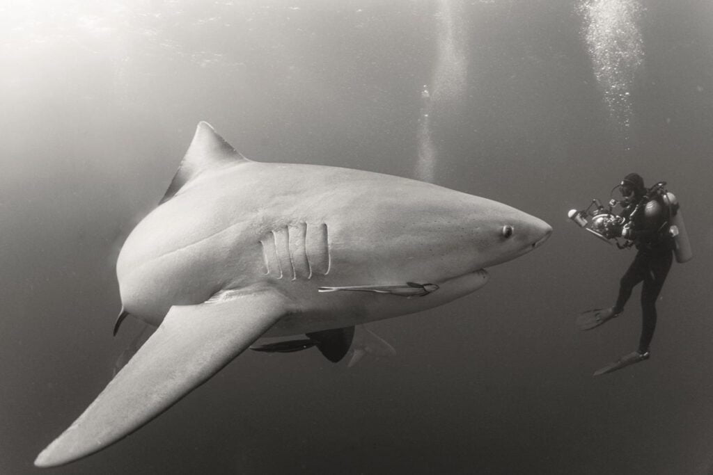 Resulta fascinante descubrir que el Tiburón Toro puede identificarse por su hocico romo, cuerpo rechoncho, ojos pequeños y dientes de sierra; que es una especie que puede alcanzar los 3.5 o 4 metros de largo en algunas aguas, pero en el Caribe son más pequeños y miden entre 2.5 y 2.8 metros de longitud. Los Tiburones Toro se caracterizan por ser los únicos tiburones capaces de nadar tanto en el agua dulce como en la salada (esto gracias a una adaptación fisiológica que les permite adaptar su organismo a las variaciones de electrolitos: cuando entran en aguas saladas pueden regular sus concentraciones de sodio y calcio, así como de urea, lo que les permite equilibrar su metabolismo; mientras que al penetrar en agua dulce disminuyen su actividad glandular y la cantidad de glóbulos rojos para adaptarse a ese ambiente).