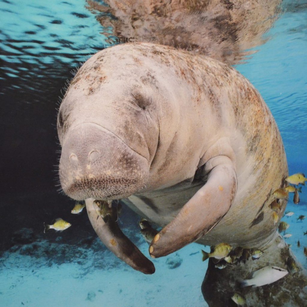 Mientras tomamos notas y fotografías, recuerdo que, a pesar de que estamos en un área natural protegida, los manatíes, aquí y en todos los lugares donde habitan, siguen estando en peligro de extinción. Estos mamíferos son animales de gran tamaño, llegan a alcanzar hasta 500 kilogramos de peso en su edad adulta, lo que mide una vaca. Sin embargo, son completamente inofensivos, no poseen garras ni colmillos, y su reacción ante lo desconocido es huir y esconderse. Por eso, durante muchos años, fueron víctimas relativamente fáciles de cazadores en busca de su apreciada carne.